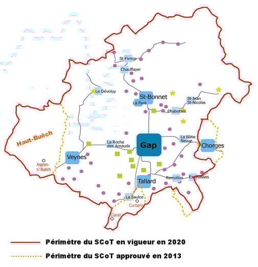 L'entrée en vigueur de la nouvelle carte des intercommunalités (01/01/2017) a entraîné une modification du périmètre du SCoT.